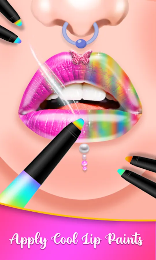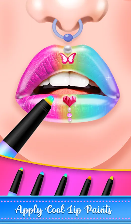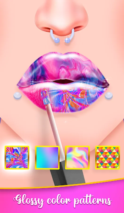 Ultramodern style lip oil art games make your face more beautiful in the salon and the perfect makeup lip design for girls.