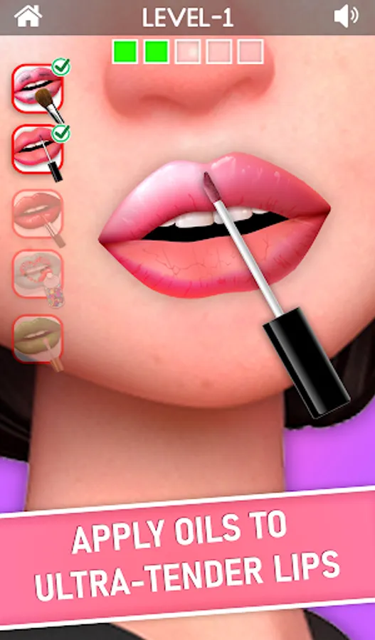 Compared to other lipstick games, this girls' makeup lipstick game is satisfying and relaxing. In the lip-art 3D game, you must start with gloss before proceeding to lipstick art and lip gloss. Learn new lipstick training unique designs and add cute lip art fashion.