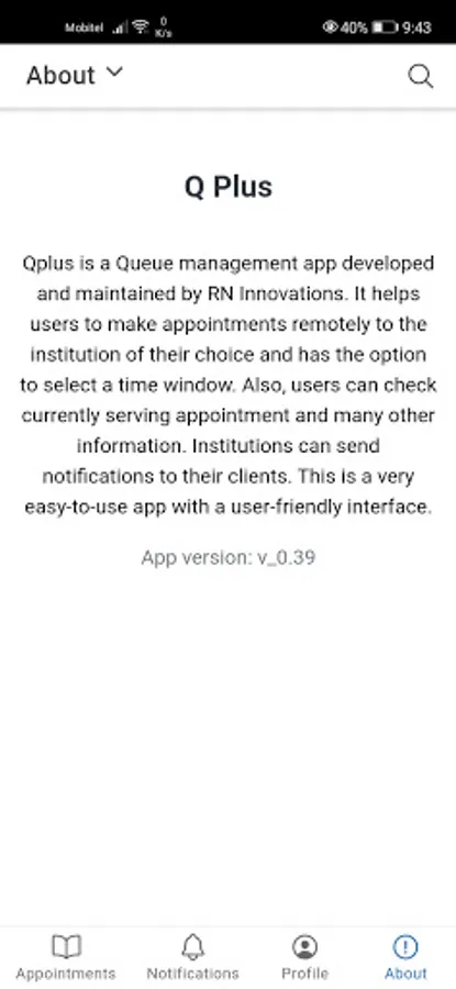 Qplus is a Queue management app developed and maintained by RN Innovations. It helps users to make appointments remotely to the institution of their choice and has the option to select a time window. Also, users can check currently serving appointment and many other information. Institutions can send notifications to their clients. This is a very easy-to-use app with a user-friendly interface.