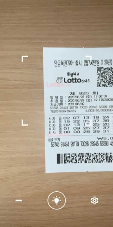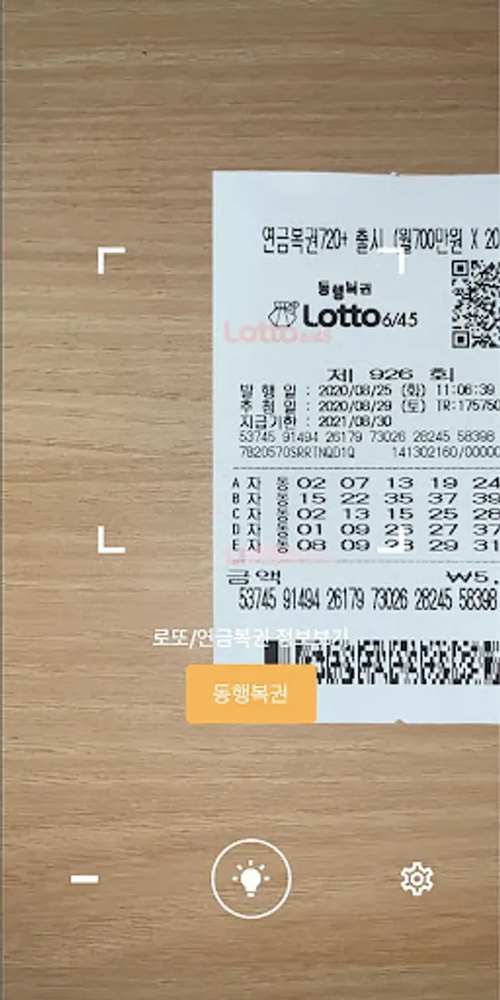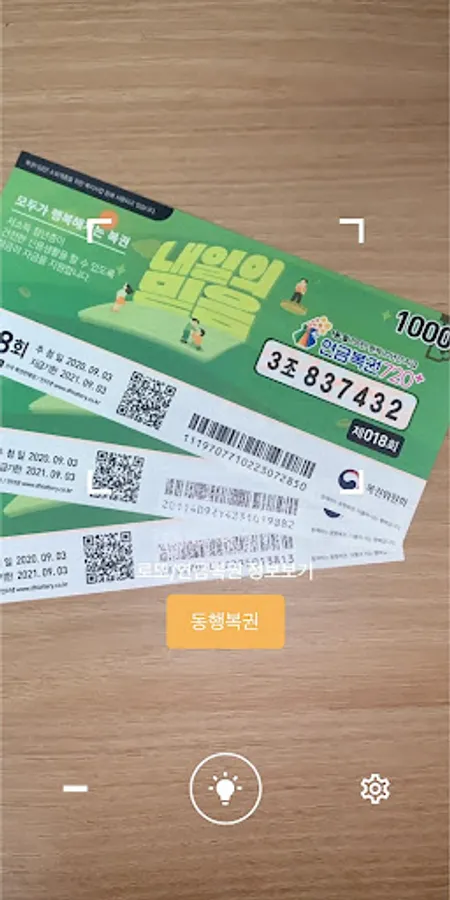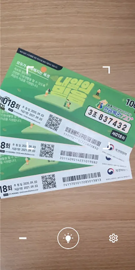 2. Align the QR code of the lotto or pension lottery to the center of the camera.