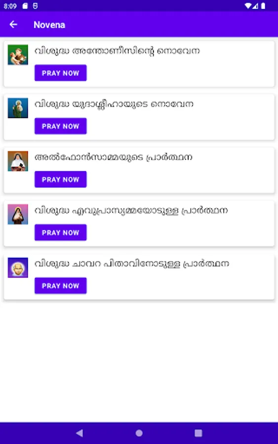 * Novena and prayers to saints.