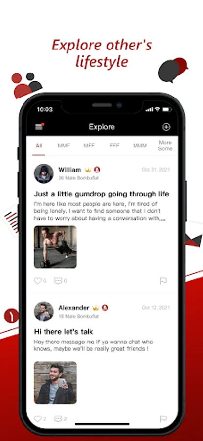 3SomeD is an exclusive dating app designed for open-minded couples or singles who want to find one on one connection, a threesome, a foursome or a group adventure. 3SomeD offers a variety of impressive features such as quick matches and live chat to facilitate people looking for MMF threesomes, FFM threesomes, MMM threesomes, FFF threesomes and other intimate relationships. Whether you are a single person or you are in a relationship, you can still find your ideal partners at our app for kink or swingers lifestyle.