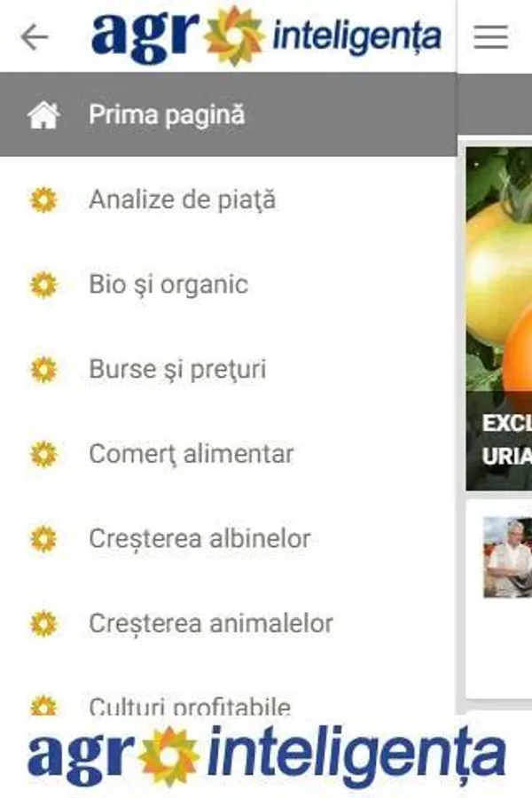 Agrointeligenţa is a publication about farmers, their business strategies and cultures that have made money. "Agriculture intelligence 'means information correctly interpreted in a concrete goal: reducing risks and increasing profits. At Agrointeligenţa, analyze information in order to help readers make decisions that no one thought to know what goes well next year and become examples for others themselves. Our motto: "The most advanced agricultural equipment is the brain and the most fertile fertilizer is information."