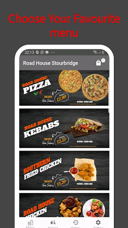 We offer a variety of food such as fish & chips, pizzas, burgers, kebabs and much more.