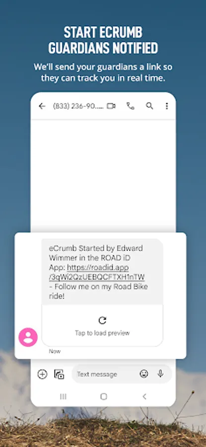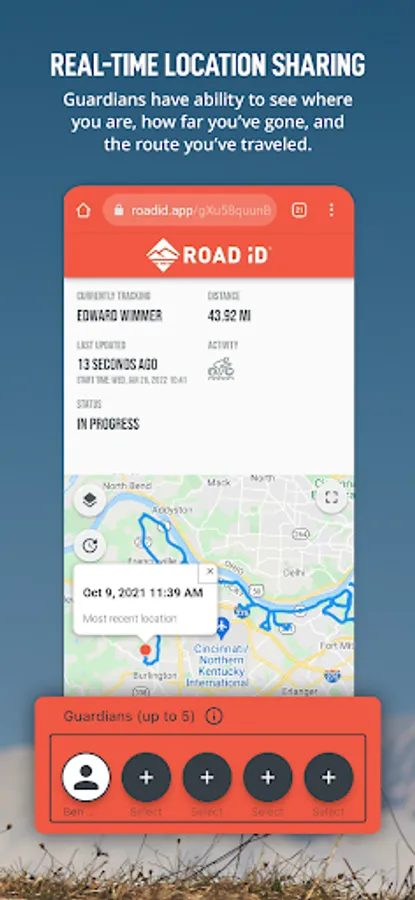 A brainlessly simple way to let your loved ones follow you on your adventures. The ROAD iD App sends eCrumbs (electronic breadcrumbs) to your selected loved ones (Guardians). eCrumbs can be sent via Email or SMS and give your Guardians the ability to see where you are, how far you’ve gone, and the route you’ve traveled. Guardians do NOT need to install the App to see your location.