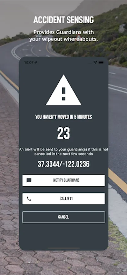 Our patented Stationary Alert technology provides loved ones with your wipeout whereabouts. When activated, the ROAD iD App will trigger a Stationary Alert when it senses that you have been stationary for too long. You are given 30 seconds to dismiss the Stationary Alert before the App notifies your pre-selected loved ones (Guardians). Stationary Alerts can be sent via Email or SMS. Guardians do NOT need the App to receive Stationary Alerts.