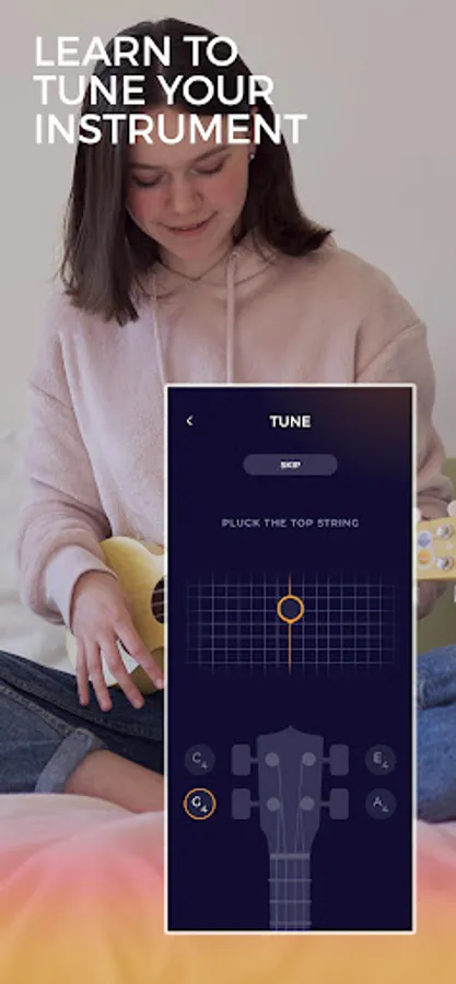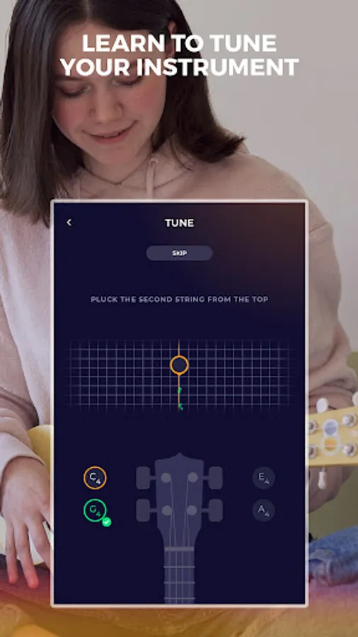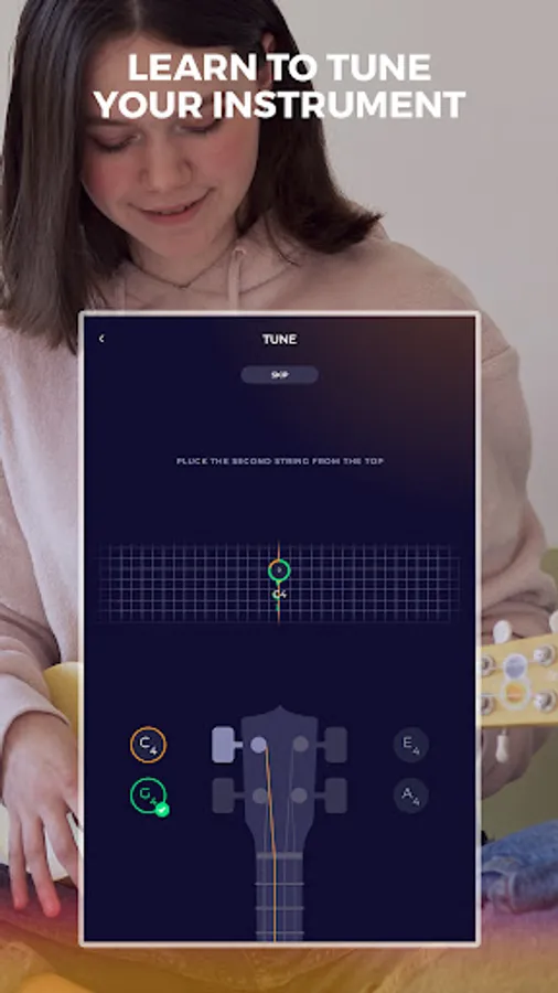 • Listening to you strum each chord and giving you instant feedback on the accuracy of the notes