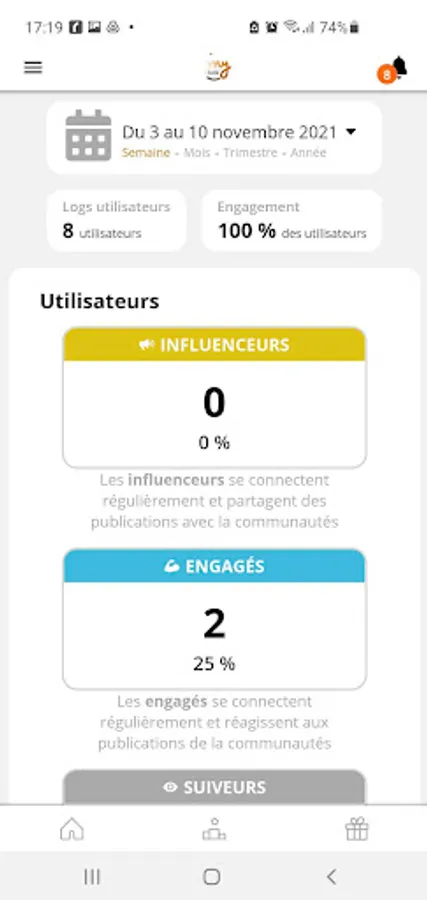 Connect, check out the group's news, chat with your teams, perform every month and choose your gifts!