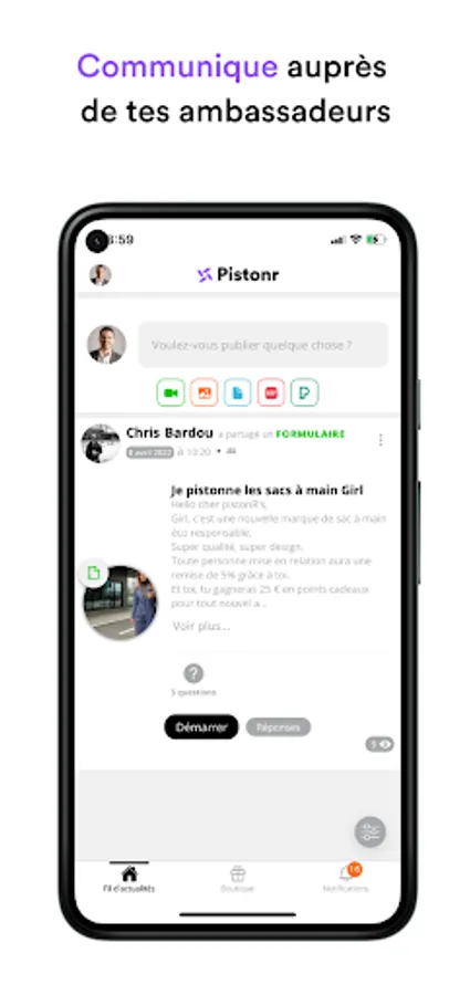 PistonR is the ideal sponsorship application for companies who want to transform their network into Ambassadors of their brand.