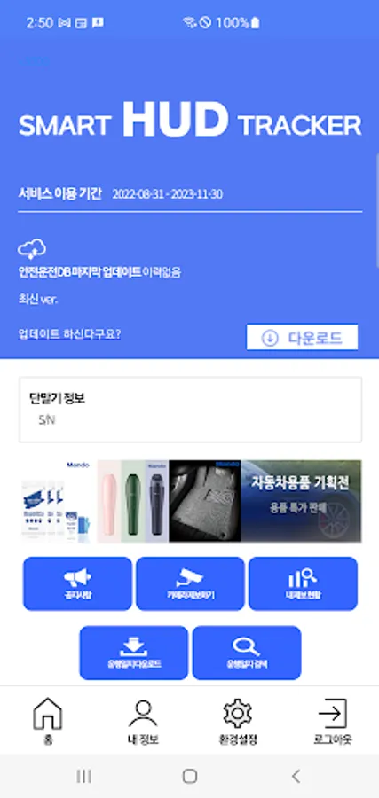 The convenience of use is improved by wirelessly updating the safe driving DB with a smartphone using the SMART HUD application.