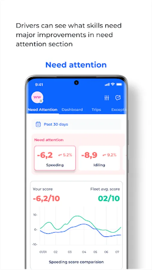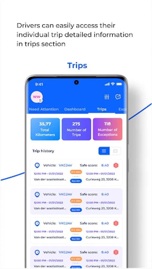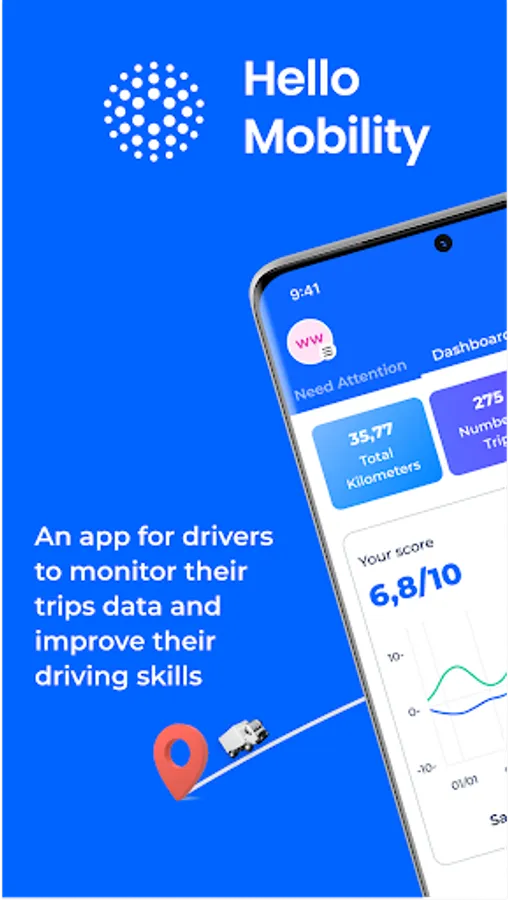 With Hello Mobility you gain insight into your entire fleet and see what you did not see before. Through data-driven coaching and process improvement, we help you with less damage, lower costs and a more sustainable driving fleet. Your drivers receive improvement tips via an app.