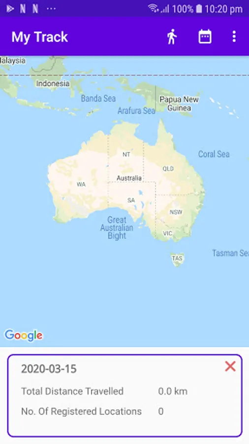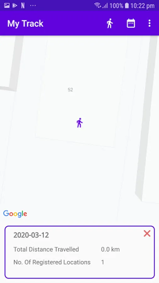 Shows footprints on map.