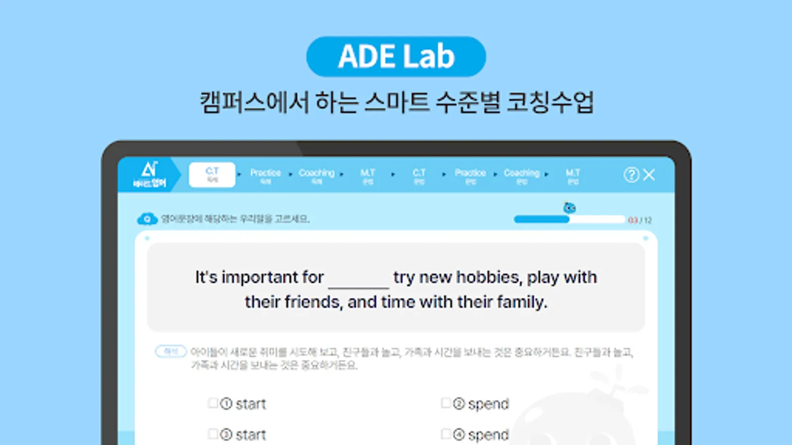 Aid Lab of Aid English offers a wide range of learning, including real-time smart coaching classes on campus, vocabulary and grammar preparatory lessons at home, learning incorrect answers, listening assessment, past questions, and reading English documents.
