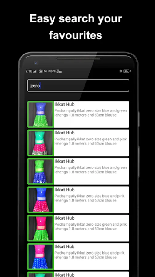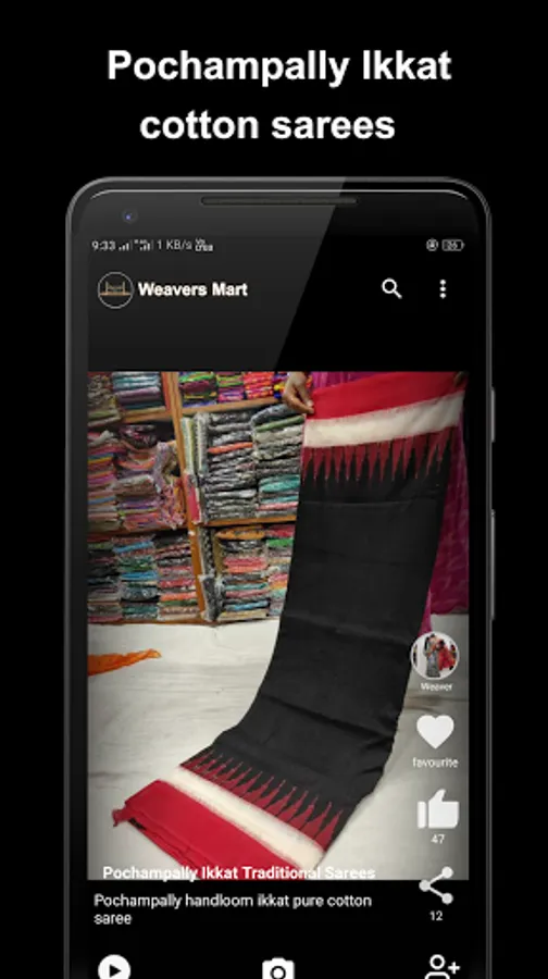 Weavers upload their products very easily so no extra stuff is not needed.Buyers are very easily contact the weavers via phone call or whatsapp.All verities of pochampally ikkat products available like sarees,lehengas(kids also),dhuppatas,cotton sarees and dress meterials etc.This app is very attractive the users.