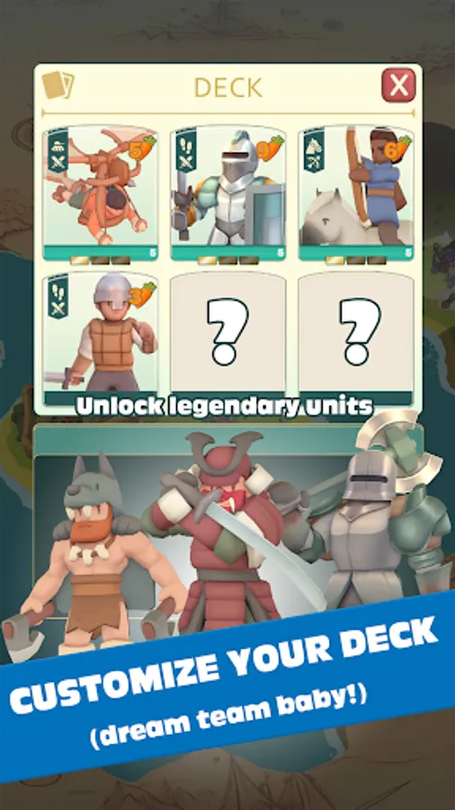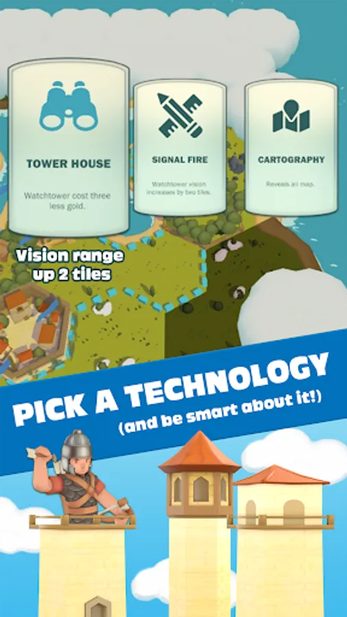 It's everything you llove about strategy games in your pocket! Grow your skills overtime by unlocking new units and buildings. Master the art of war as you perfect the perfect deck to defeat your enemies. Exploration, strategy, farming, building, warfare and technology research all support your ambitions for glory - will you deftly maneuver to ascede the throne? Venture onwards, my Liege, and carve your name into the history books for eons to come!