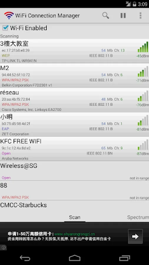 3. Instant connect. Once searched, once start connecting. Way faster than the system build-in Wi-Fi scanner.