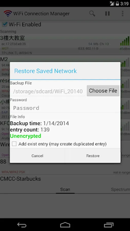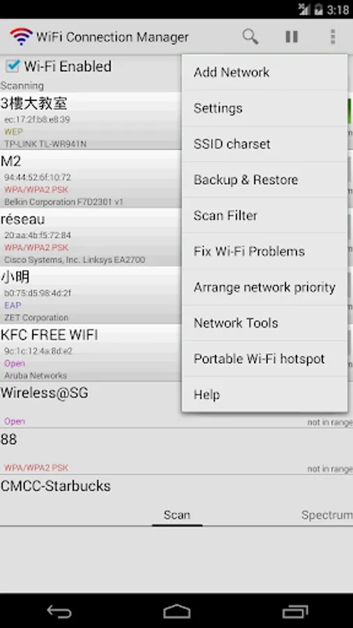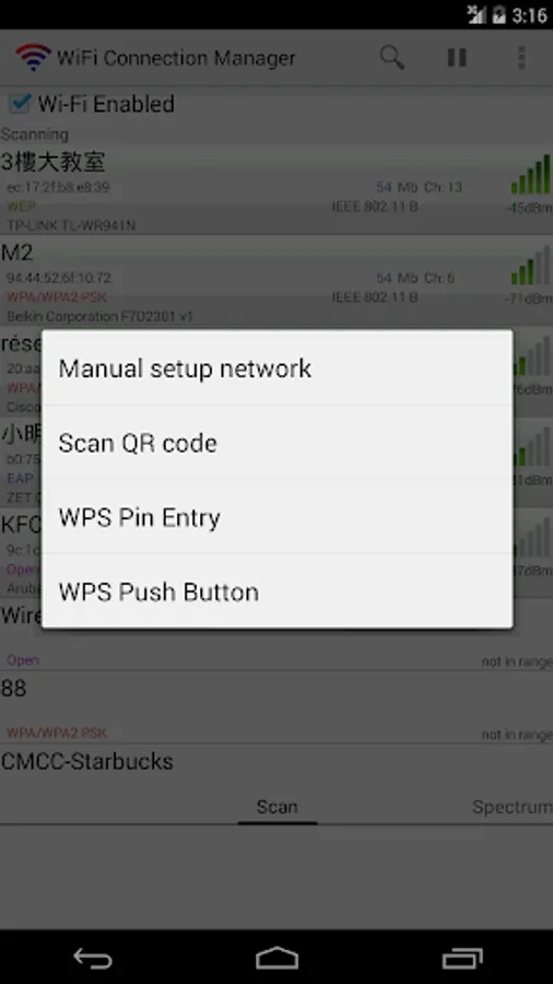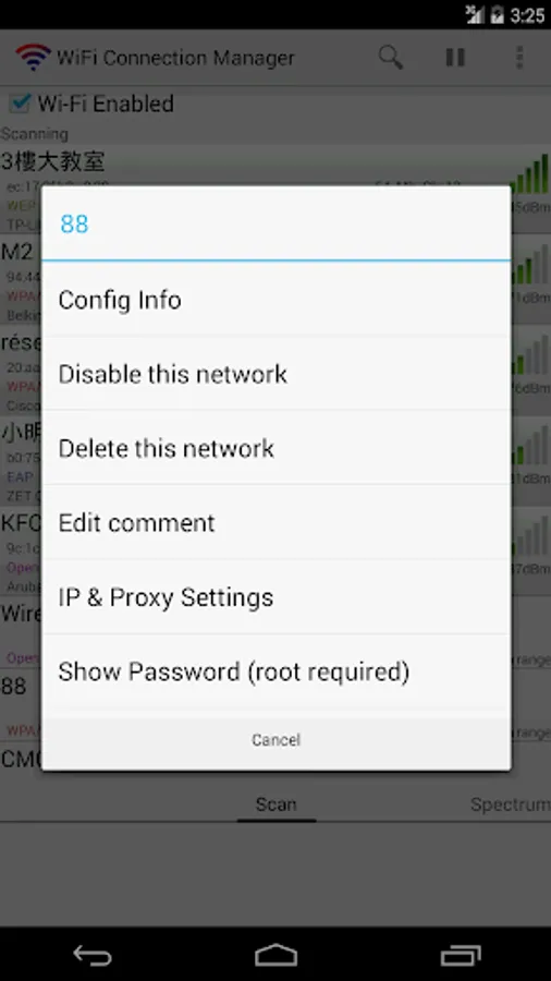 WiFi Connection Manager is a Wi-Fi scanner, manager and connector on android.