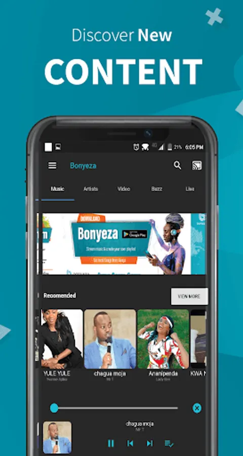 Bonyeza app is a content provision platform that enables African music lovers to download content from anywhere. And for music producers and/or artists to upload their content, market it and make money from it.