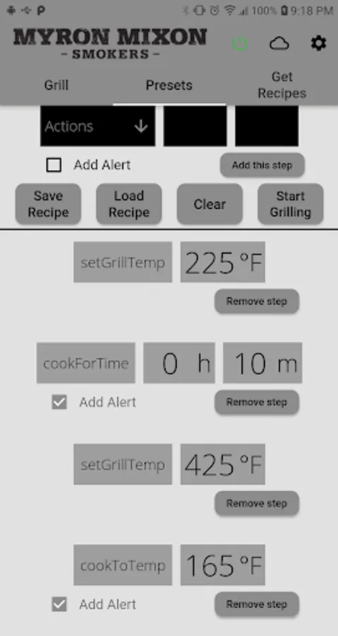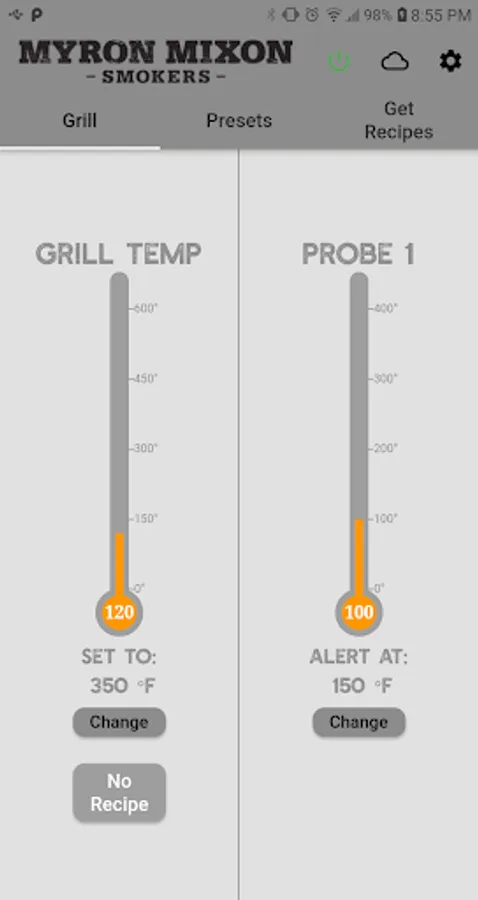App for controlling Myron Mixon pellet grills. Use one of our favorite recipes, or make your own! This app will allow you to control your grill over WiFi, and it will also show you the grill's temperature and the readings of any connected probes in real time.