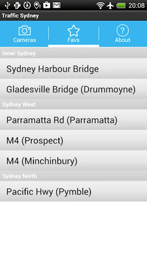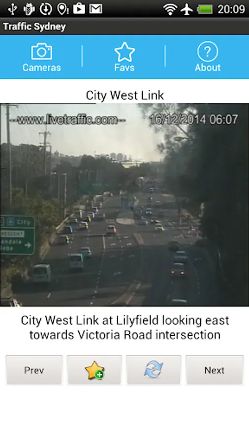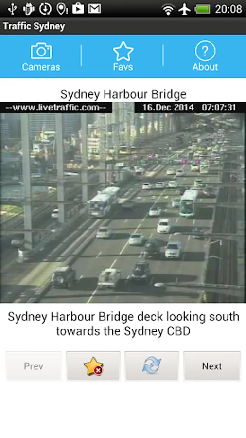Ready to head home and you want to check the traffic? Live Traffic Sydney is the fastest way to get to the traffic web cams that matter to you. Instead of browsing to a web site and working your way through the menus and map graphics to find a web camera just open Live Traffic Sydney on your android and go straight to the camera you want with one click. Navigate through the other cameras along your route, in order, with a simple Next button.