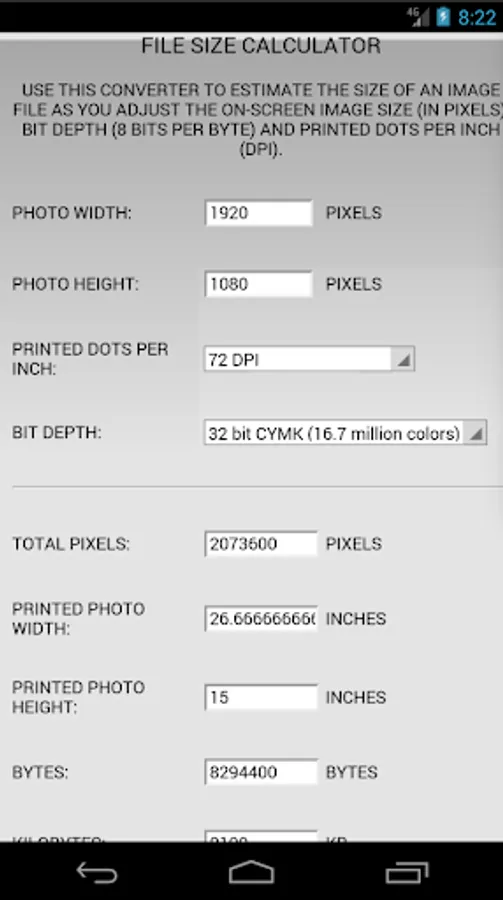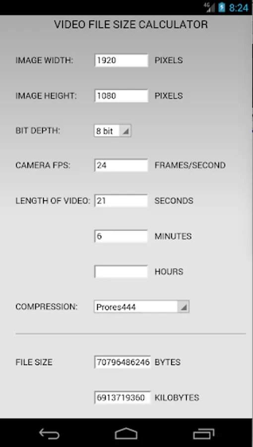A simple app that calculates file sizes for bot images and video files, using only a few parameters