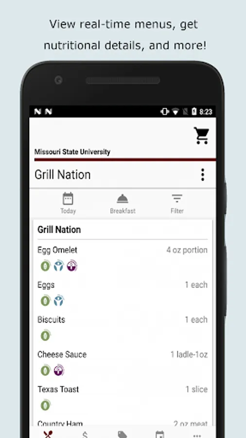 Dine On Campus™ provides helpful, dining-related information for your school. After selecting your school, you can find places to eat, whether or not they're open, and how close they are to you. Once you select a location, you can get directions using Maps and browse menu items. Tapping on a menu item displays the nutritional information and other important details.