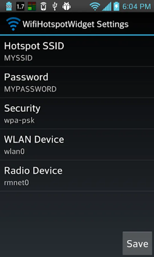 If you need to change these later, just run the app and click 'Settings'. Changes to settings will not take effect while the hotspot is on.