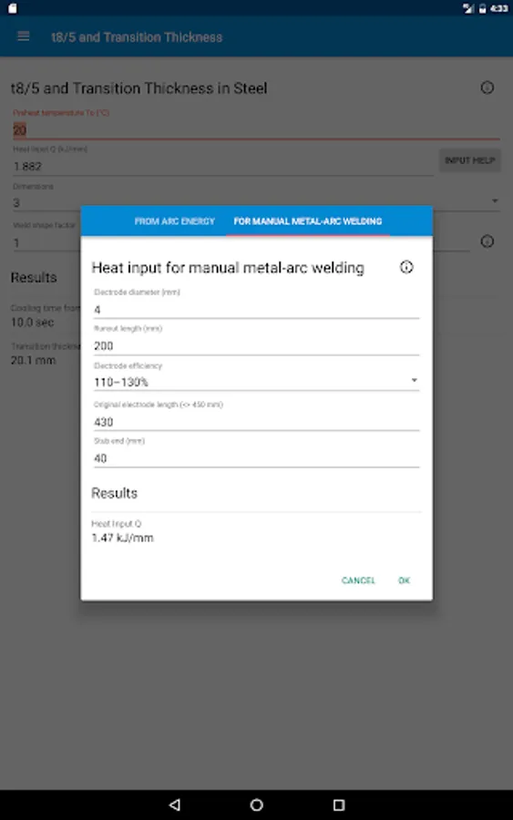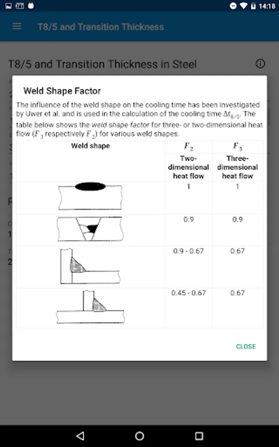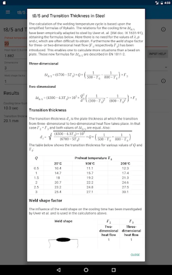 Calculate thermal cycles, t8/5 and preheat temperatures for the welding of steel. Ideal for welding teachers, students and engineers!