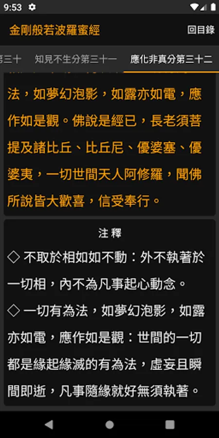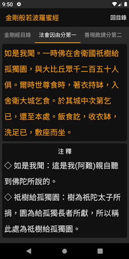 This article uses the currently circulating version of Kumarajiva by Master Yao Qin Sanzang, and is displayed in golden font. The catalog is divided into Zhaoming, and the interpretation of the scriptures is based on the six ancestor mantras narrated by Tang Liuzu master Hui Neng, displayed in white font.