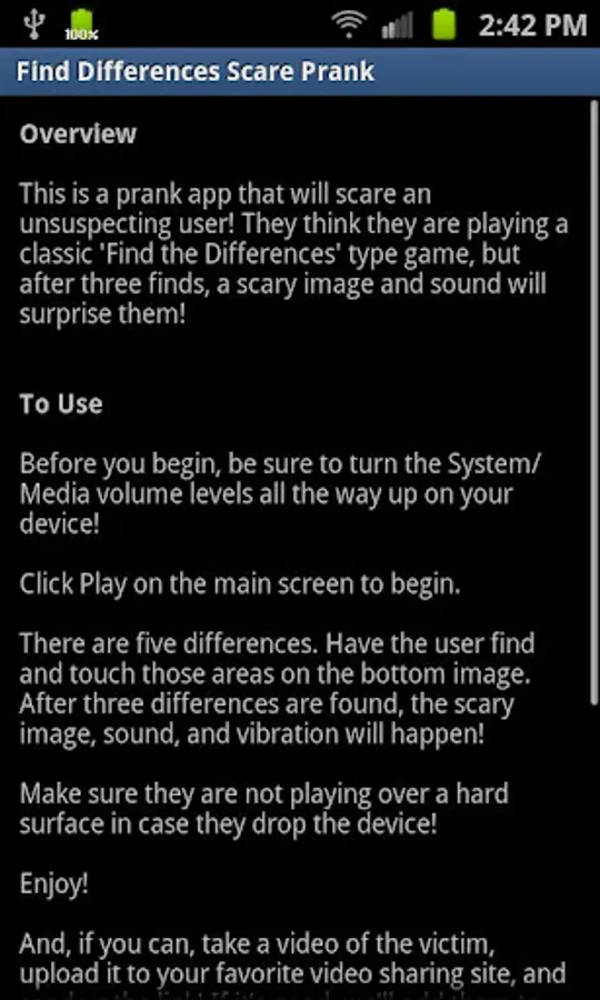 Visit www.RobertBruceAndAssociates.com/apps/FindDifferencesScarePrank for the latest information.
