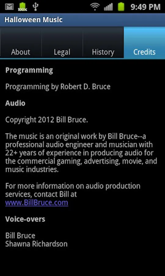 Visit www.RobertBruceAndAssociates.com/apps/HalloweenMusic for the latest information.