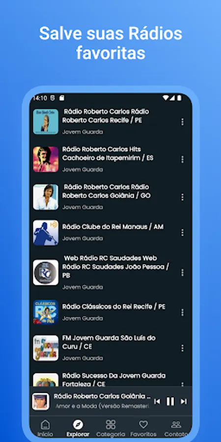 ✅ Personal favorites: Save your favorite radios in a personalized favorites list to easily access them whenever you want. Bookmark the stations you like the most and create your own selection of Roberto Carlos songs to enjoy at any time.