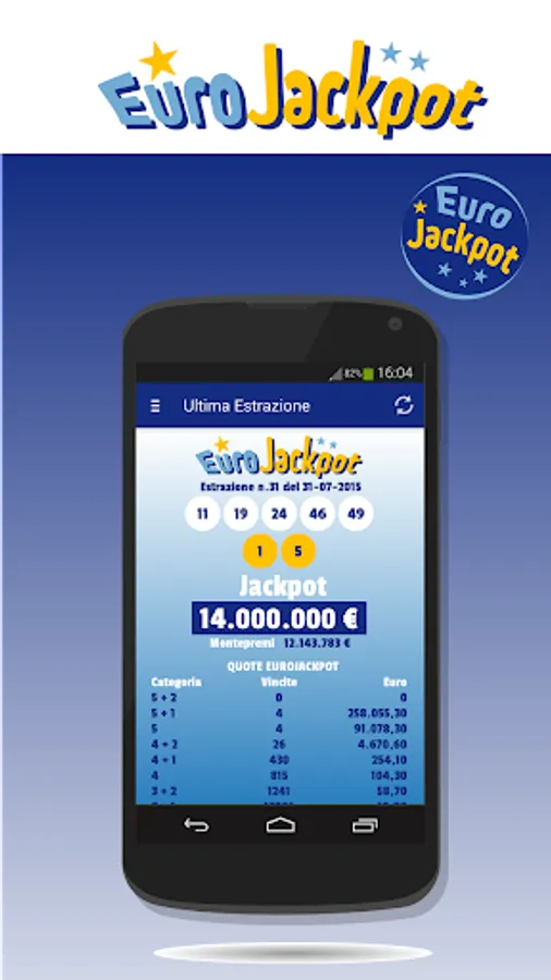 Do you want to see the results of the EuroJackpot lottery for free on Android? What are you waiting for? Download the app now that allows you to consult the latest Euro Jackpot results within minutes of the draw.
