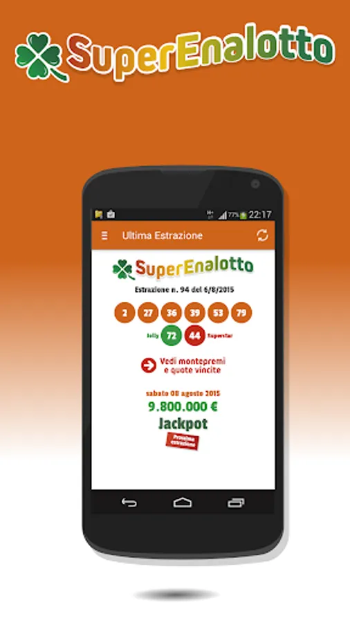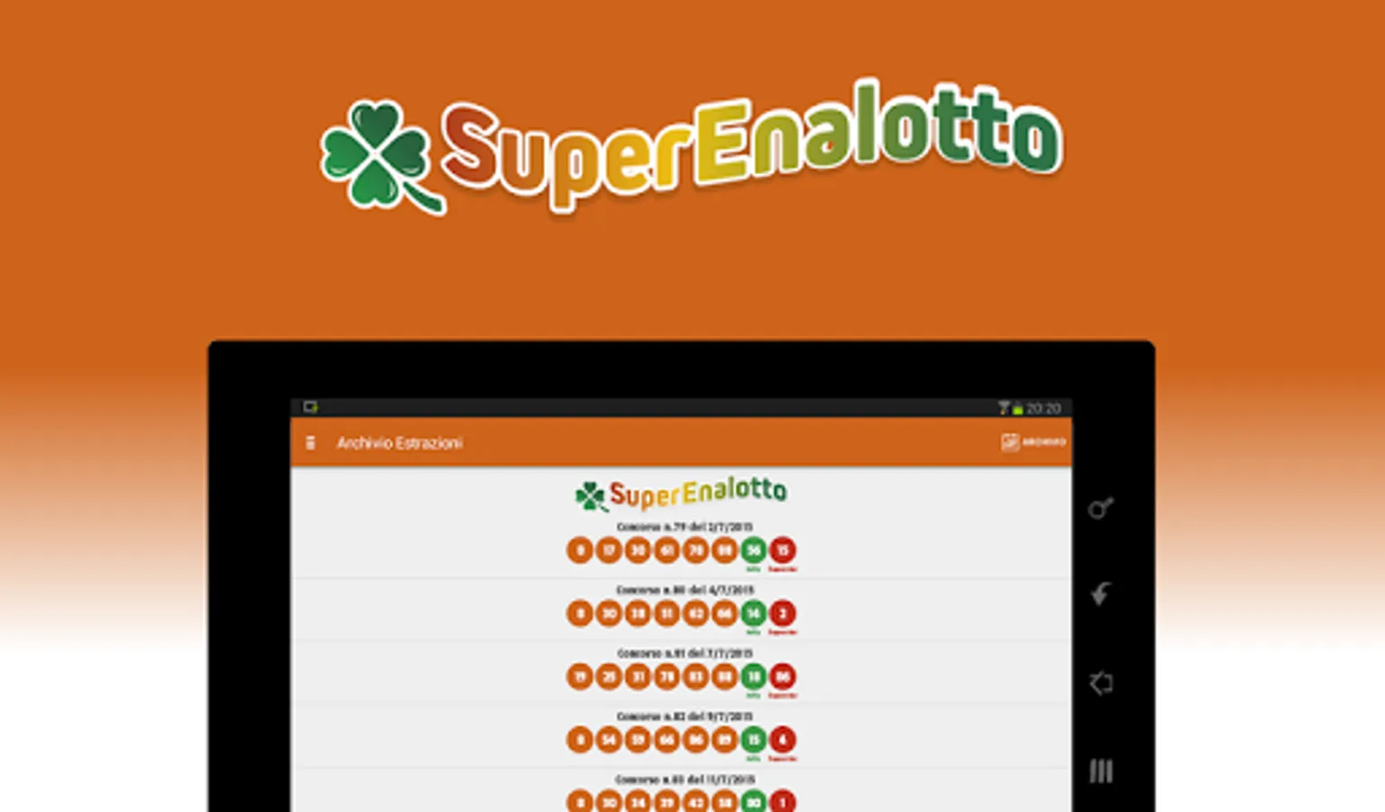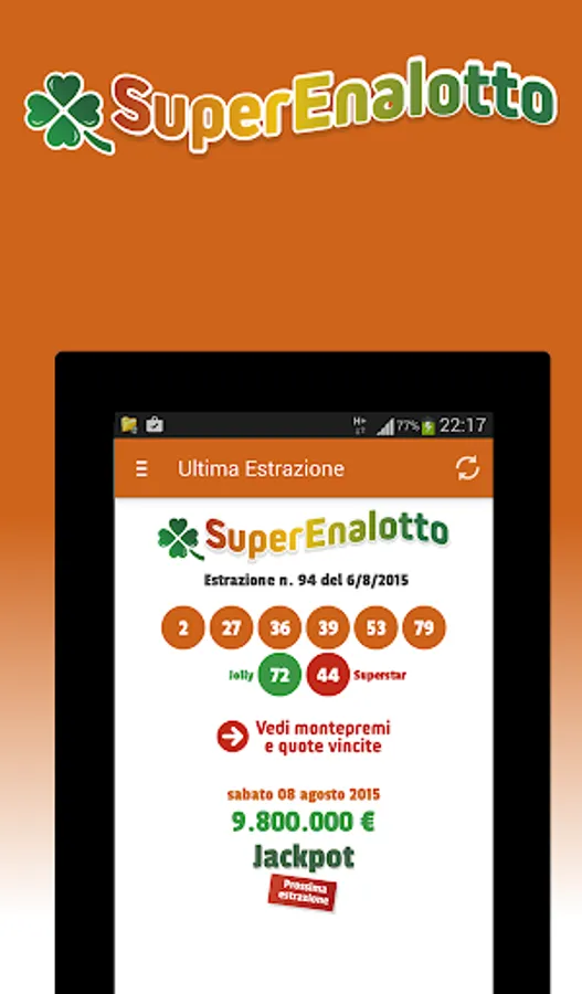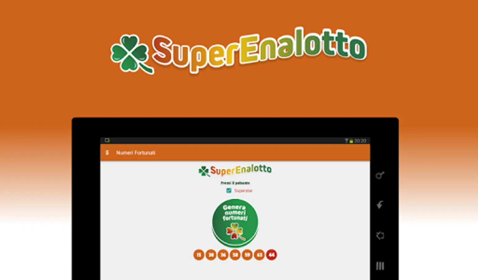 Application for SuperEnalotto that displays the last draw with the relative winning odds (both for the super enalotto and superstar sections).
