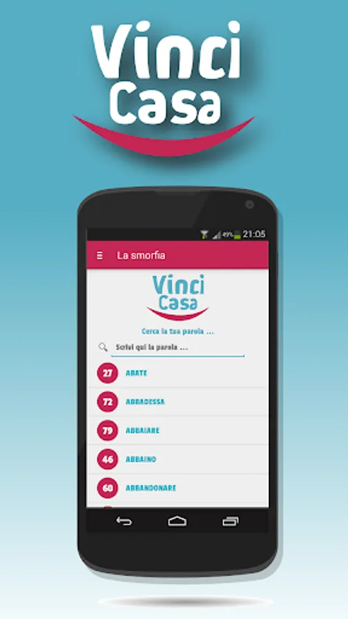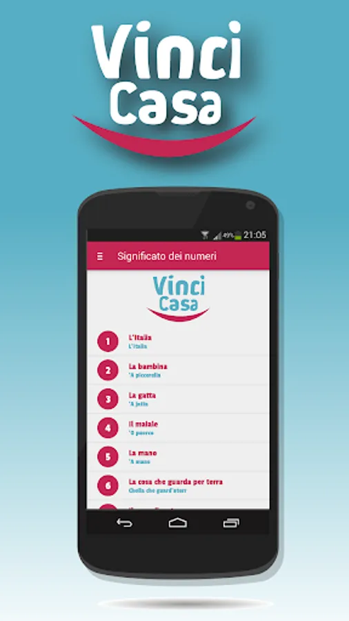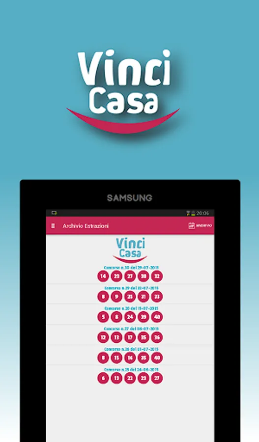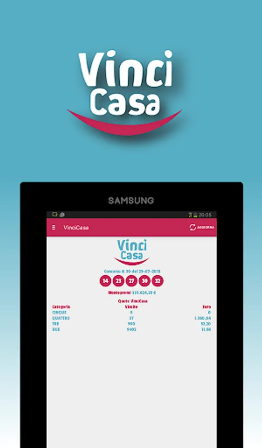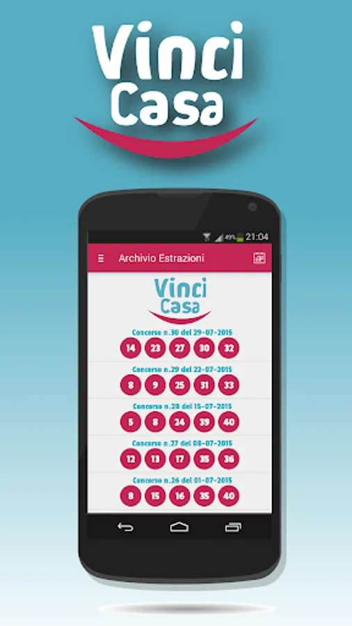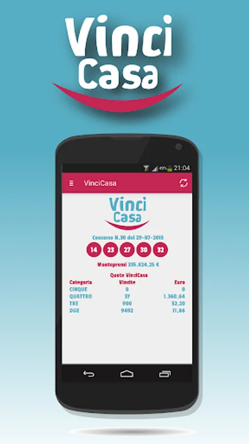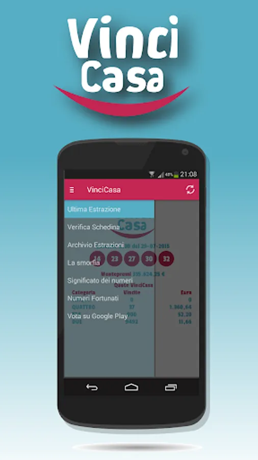 Application for the VinciCasa game that displays the last draw with the relative winning odds.