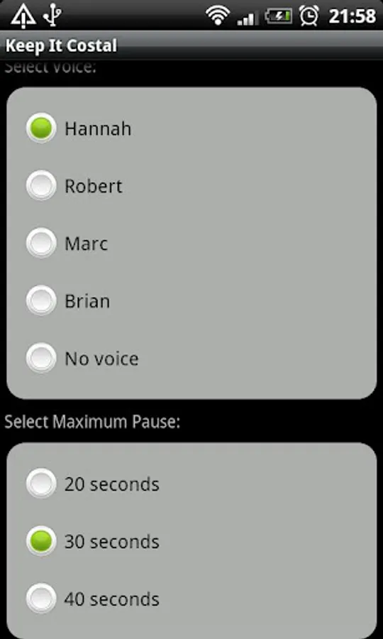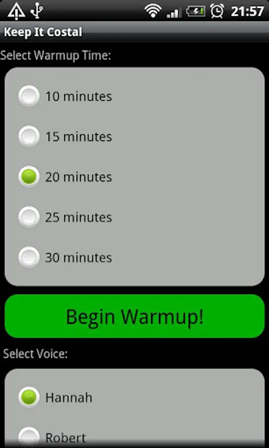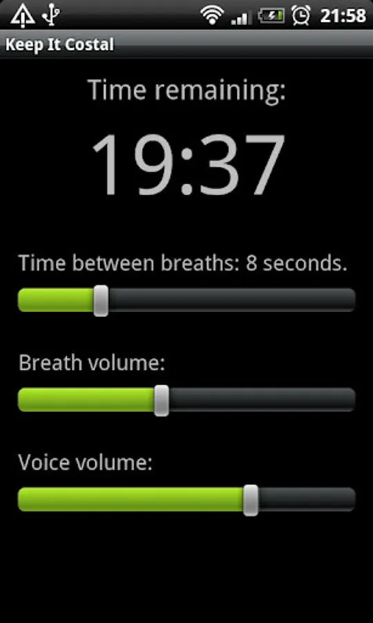 This application provides an audio experience where users can pause and breathe along with the selected profile over a set time to warm up their costal diaphragms.