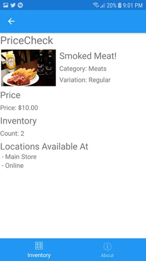 - Price Check: Scan the barcode and see the inventory item description, price, how many items are in the inventory and locations available.