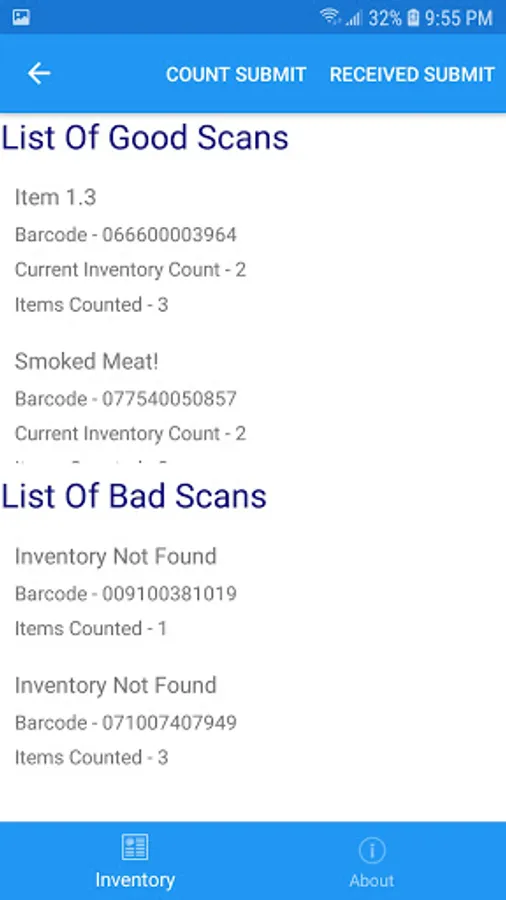 - Quick Scan: Ability to scan multiple barcodes and then choose if you wish to replace the count with what is scanned or add them to the inventory.
