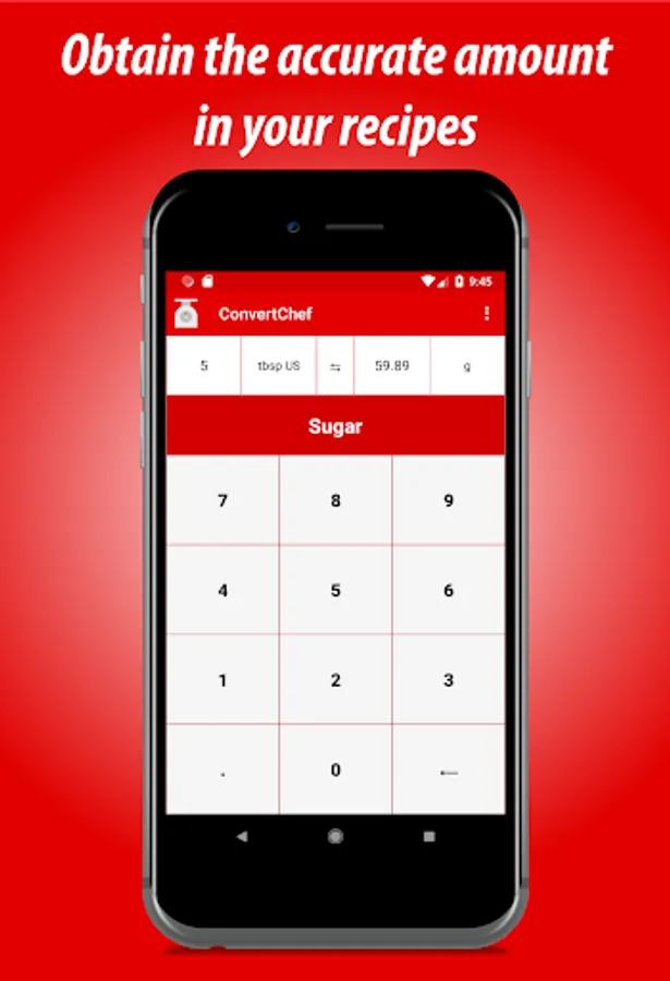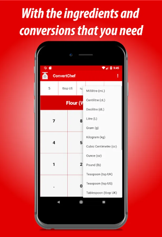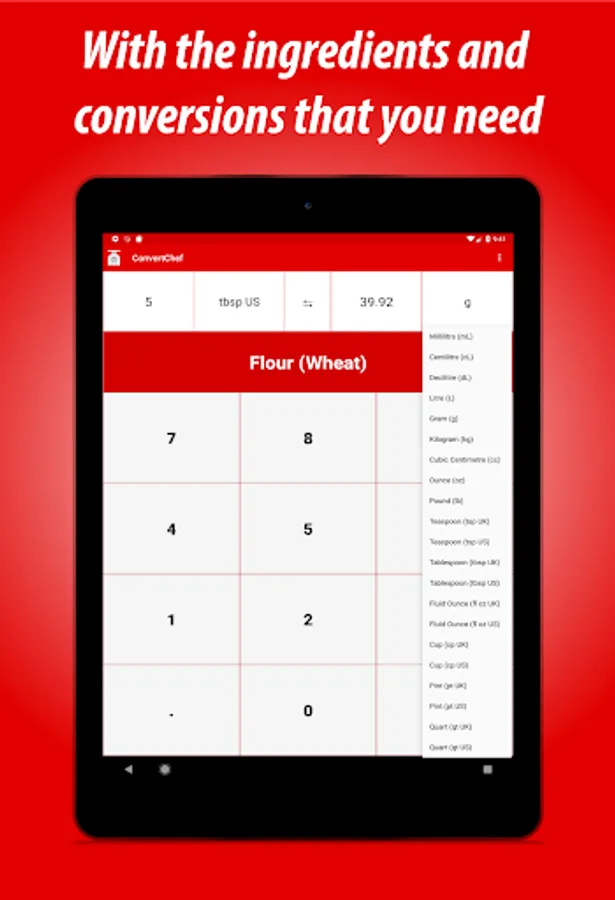 Convert the quantities of your ingredients with ConvertChef, with this app you can transform a wide variety of foods with different units, such as: