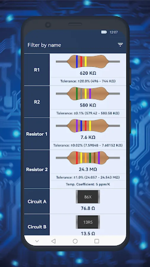We've added search filters to help you quickly find your saved resistors. You can sort resistors by name or type, making it easy to manage large amounts of information.