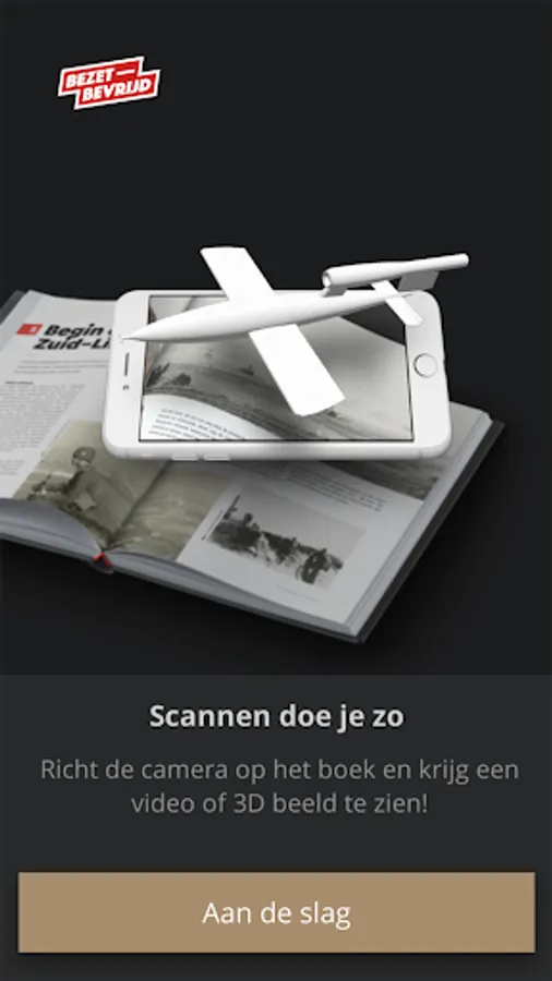 Welcome to the busy app! This app uses Augmented Reality to reveal videos and 3D models from the BezetBevrijd books. For example, you can have a Sherman Tank appear on your book and view all the details briefly. There are also chapters in the chapters to scan after which original images from the Second World War can be seen.