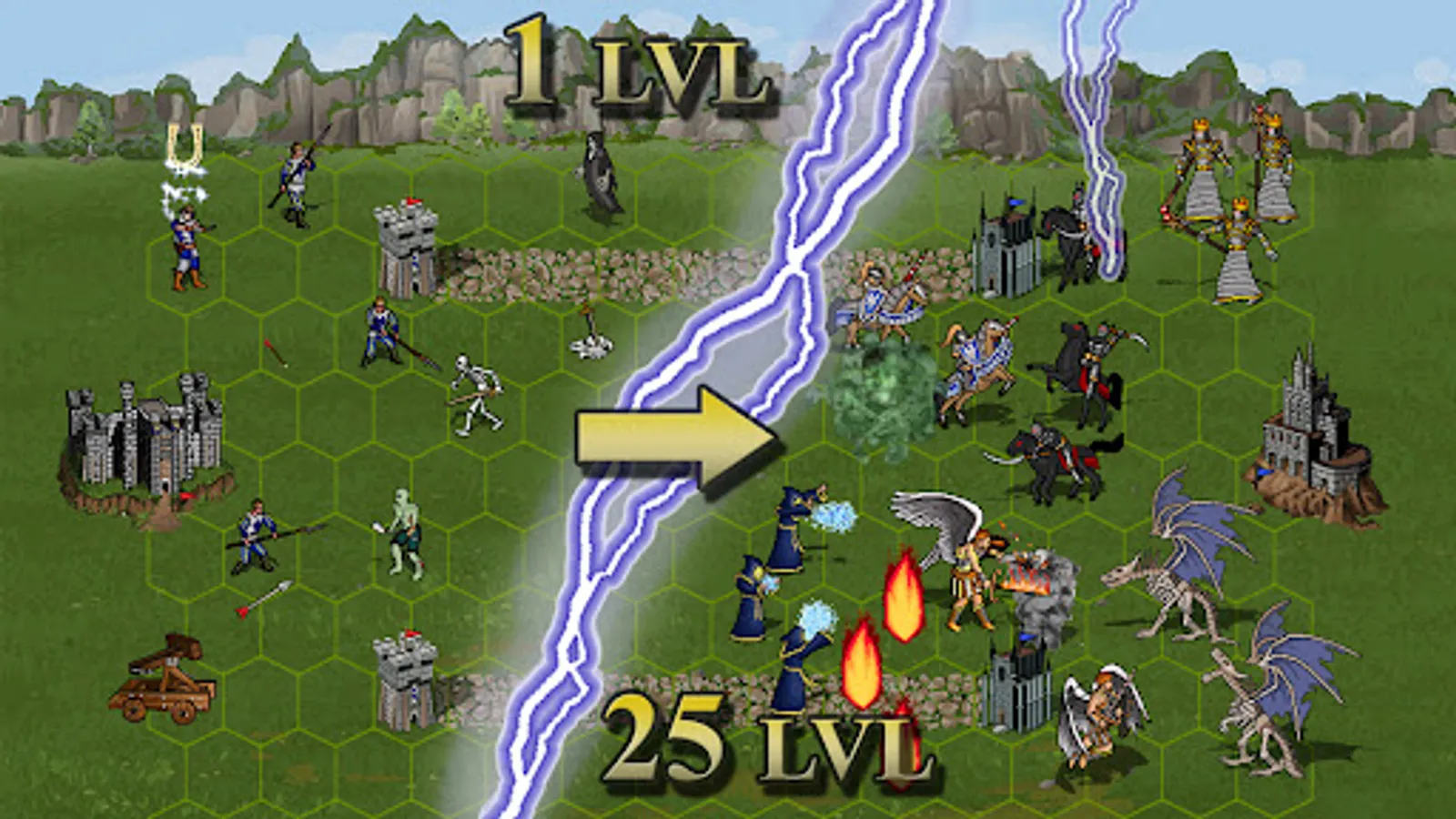 Choose one of the 8 heroes. Put on the most powerful artifacts. Improve their might and magic, war and money mastery on the battle arena. Unlock new warriors, from Knight and Archer to Champions and angel. Keep ready the powerful spells from magic book that can burn the enemy in a matter of seconds or give super strength to your own troops.