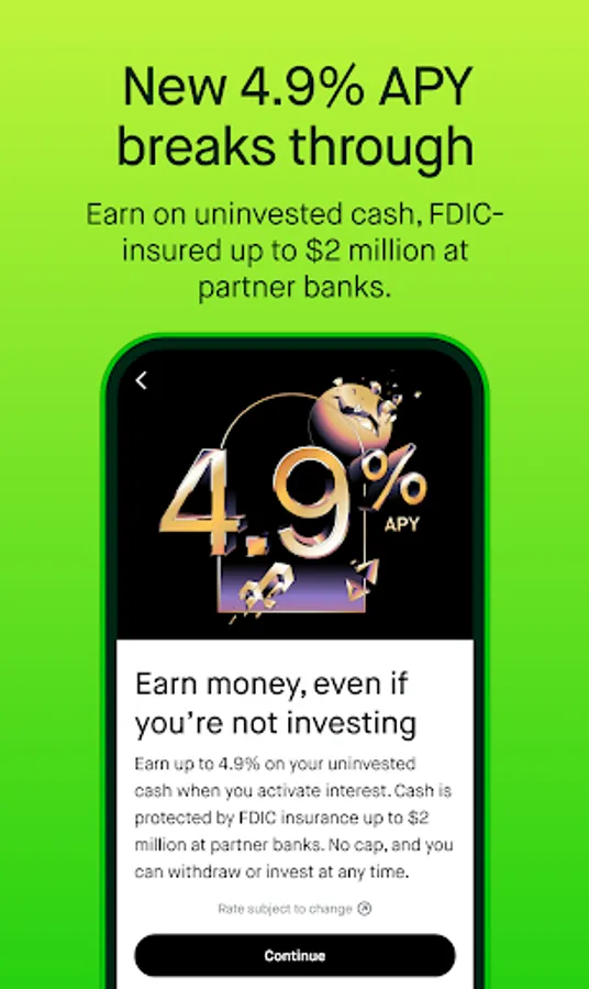 - Earn 4.9% on your uninvested cash. Terms apply.**