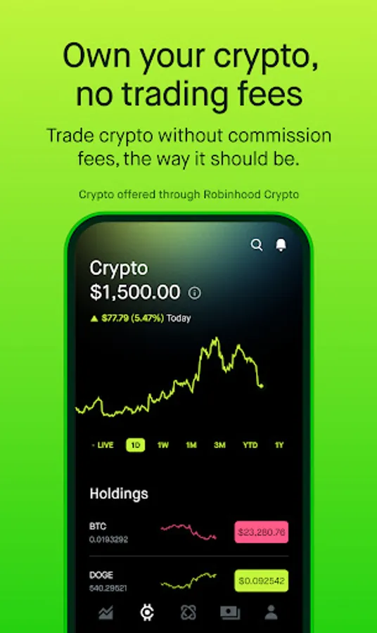 Robinhood helps you run your money your way. Trade stocks, options, ETFs, with Robinhood Financial & crypto with Robinhood Crypto, all with zero commission fees. Other fees may apply*.