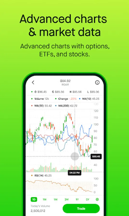 - Identify trends for your investing strategies with technical indicators like moving average (MA), relative strength index (RSI), and more.