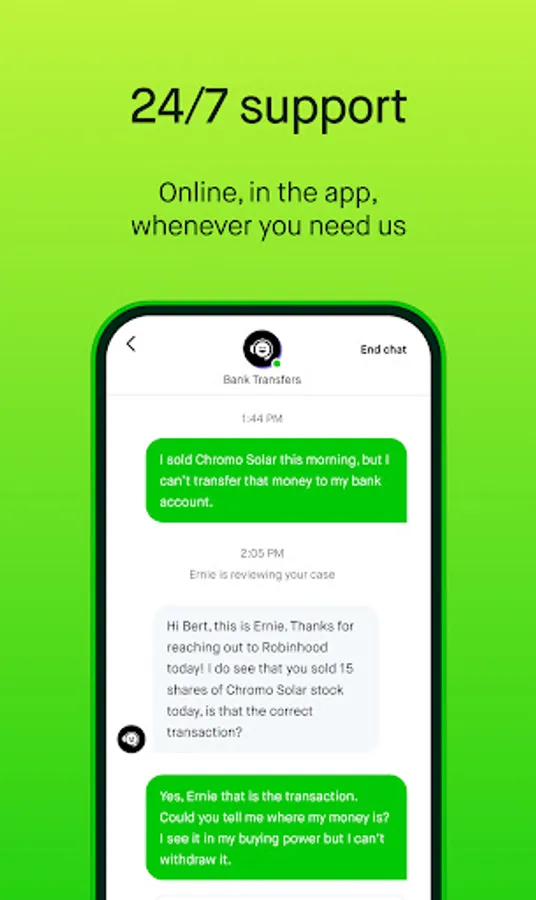 - Chat with a Robinhood associate on your own schedule for any question you have.