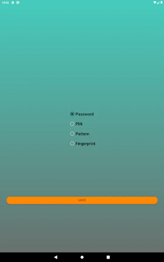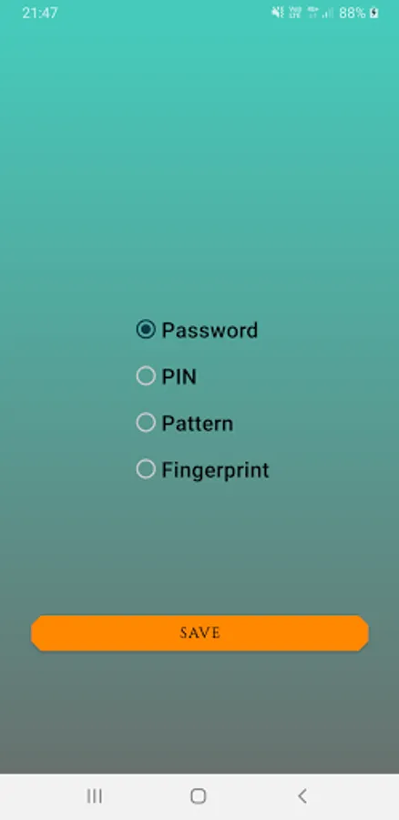 The app features 4 differing login methods. 'Password', 'PIN', 'Pattern', and 'Fingerprint'.