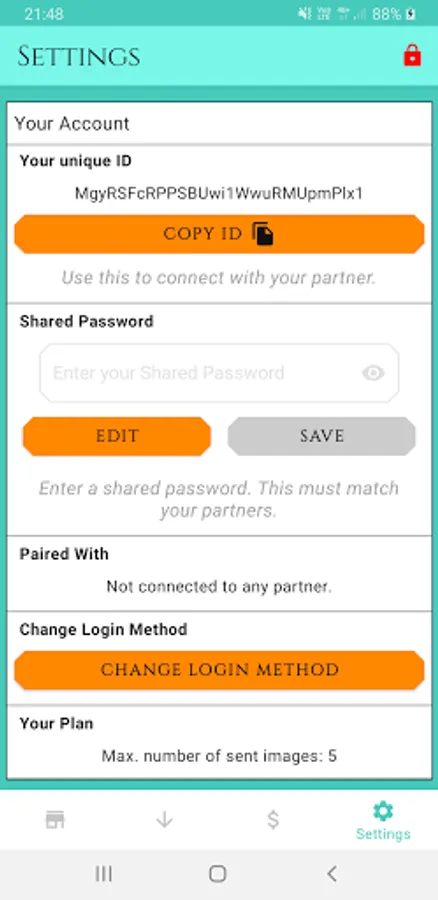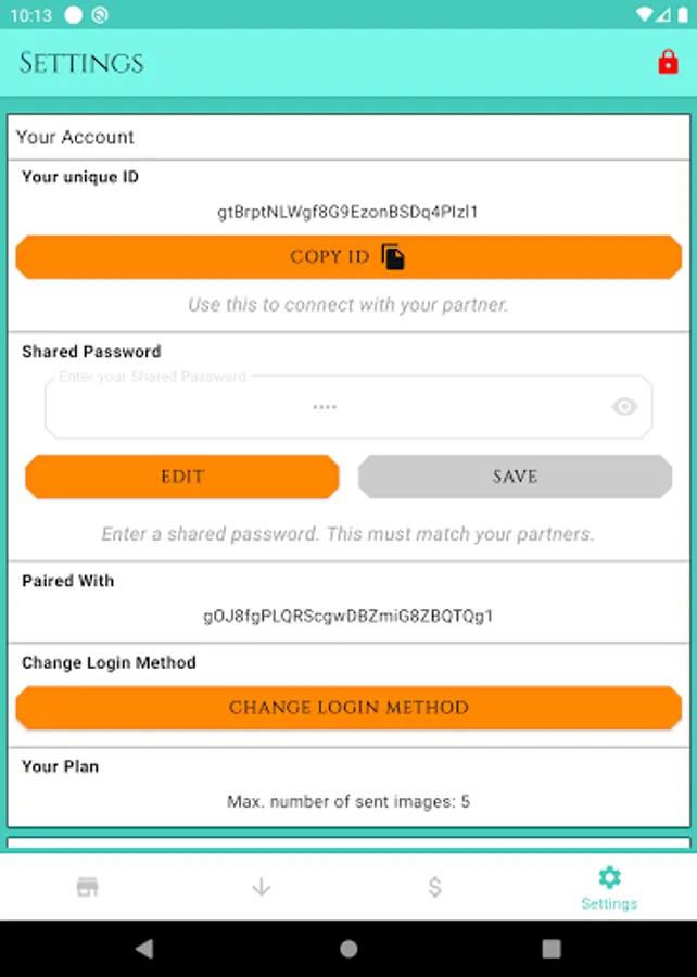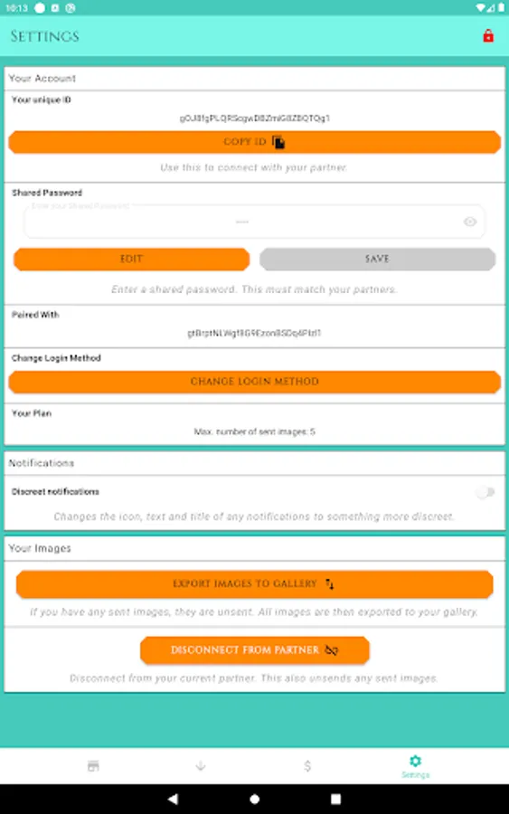 Images are encrypted before they are sent, and then decrypted by your significant other when they are viewing your sent images. This is done by using a ‘Shared Password’ which you and your significant other decide on.