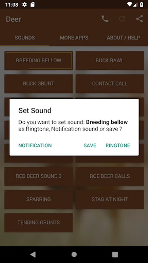 Longclick to save the sounds to a local folder to use in other apps !