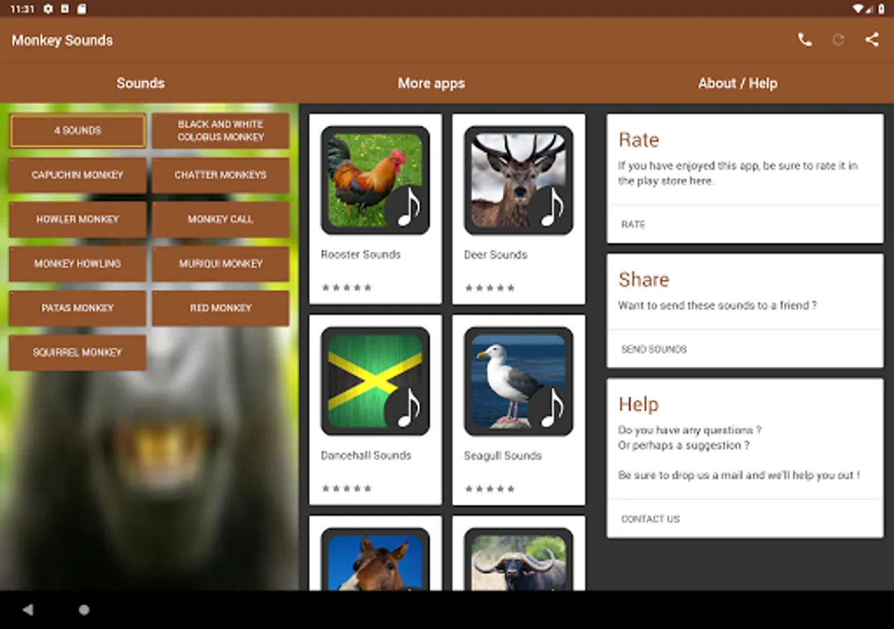 Over 15 different monkey sounds !